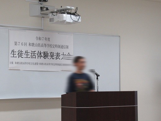 10月4日(土)、県立新宮高校にて「生活体験発表大会」の県大会が開催されました。県内の定時制高校から代表生徒が集まり、それぞれが自身の経験を振り返りながら、これまでの成長を堂々と発表していました。本校からも2名の生徒が出場し、最優秀賞こそ逃したものの、これまでの練習の成果を十分に発揮することができました。発表された皆さん、本当にお疲れさまでした。