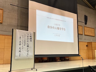 午前中は「自分の人権を守る」というタイトルで、本校スクールカウンセラーの土井先生から講演がありました。