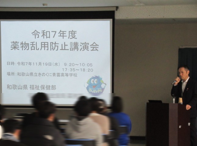 本日、昼間部1年生及び夜間部生徒を対象に薬物乱用防止講演があり、大麻などの薬物がSNSを通じて販売され、身近な存在になっていることの危険性や、薬物使用による個人の健康や周囲の人々に与える悪影響について説明がありました。