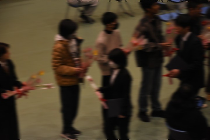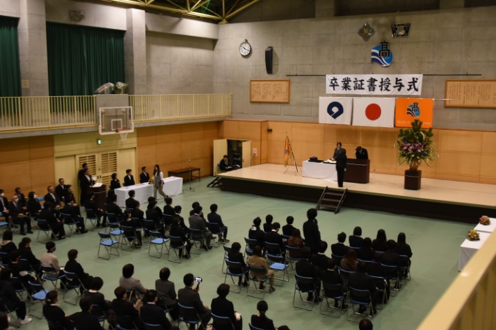 本日、卒業証書授与式が行われました。 卒業生一人ひとりが壇上に上がり、それぞれが歩んできた高校生活を振り返りながら、校長先生より卒業証書を受け取りました。 証書を手に壇上を降りる姿からは、これまでの努力と成長、自信が感じられ、皆、晴れやかで頼もしい表情を見せていました。 仲間や先生方とともに過ごした日々を胸に、新たな道へと歩み出す卒業生の皆さんの今後の御活躍を、教職員一同、心より祈念しています。
